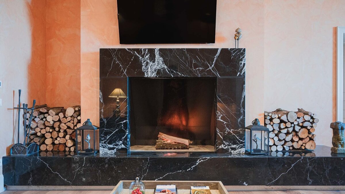 The Junior Suite (approximately 50-60 m²) come with a welcoming entrance, a spacious living room area and a romantic stone fireplace.